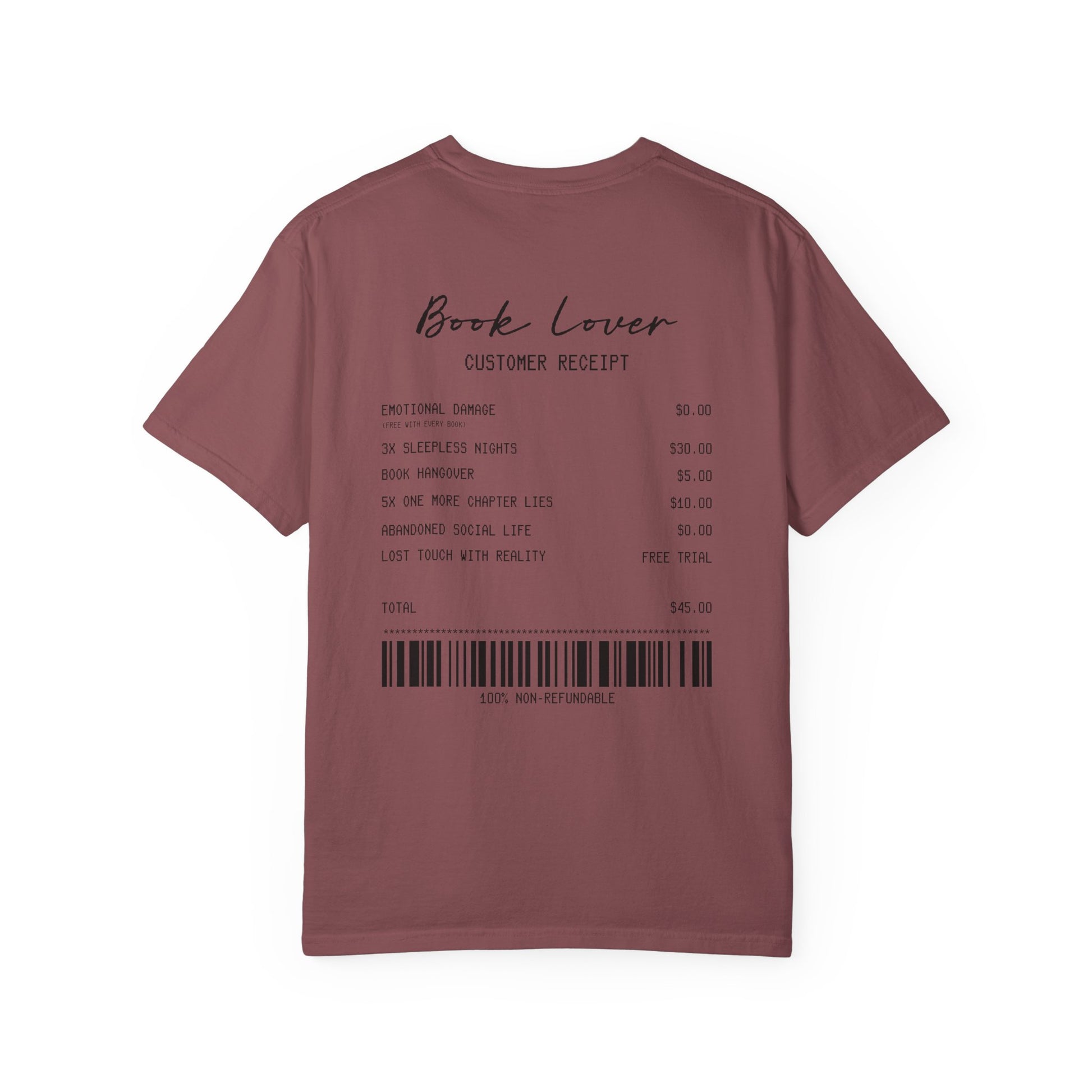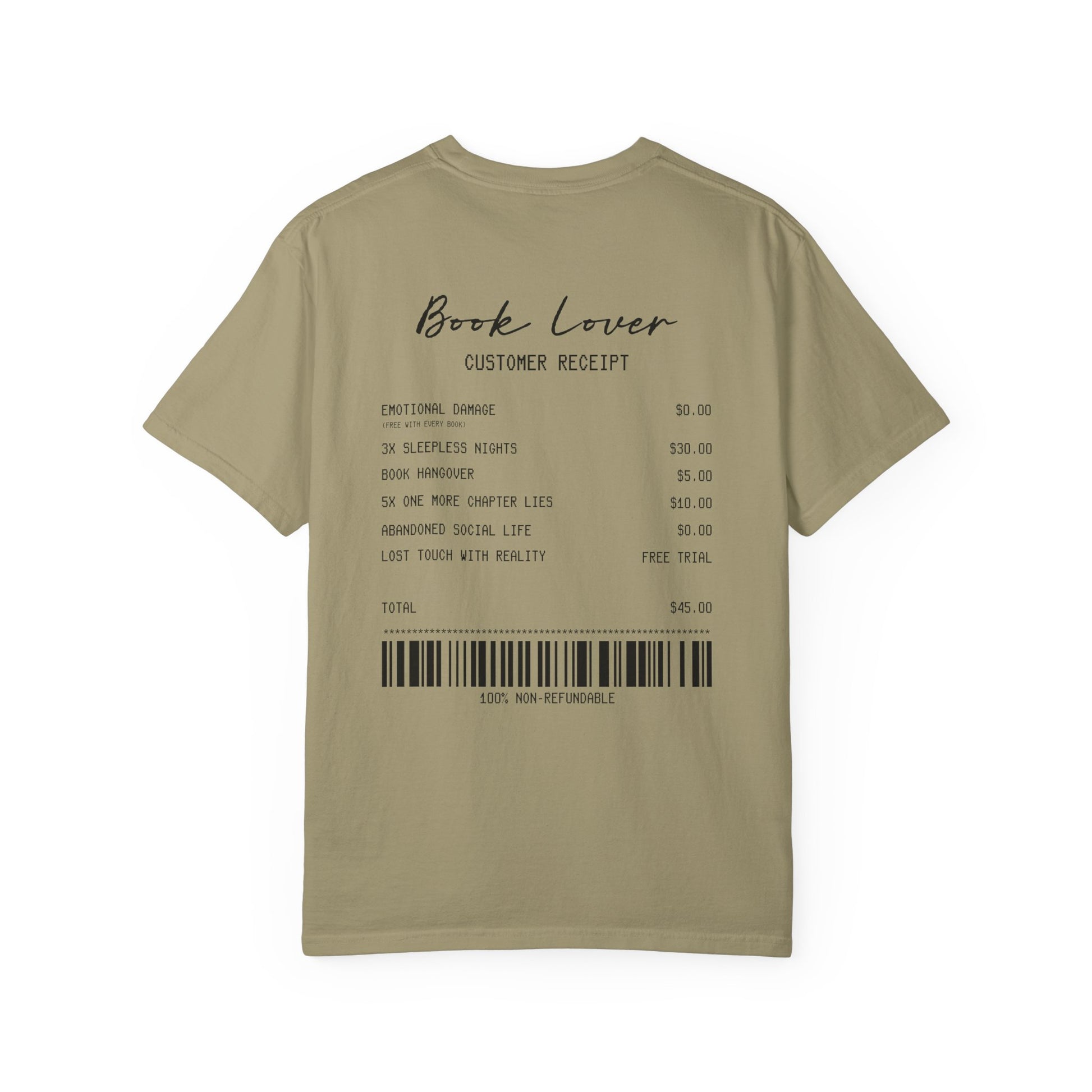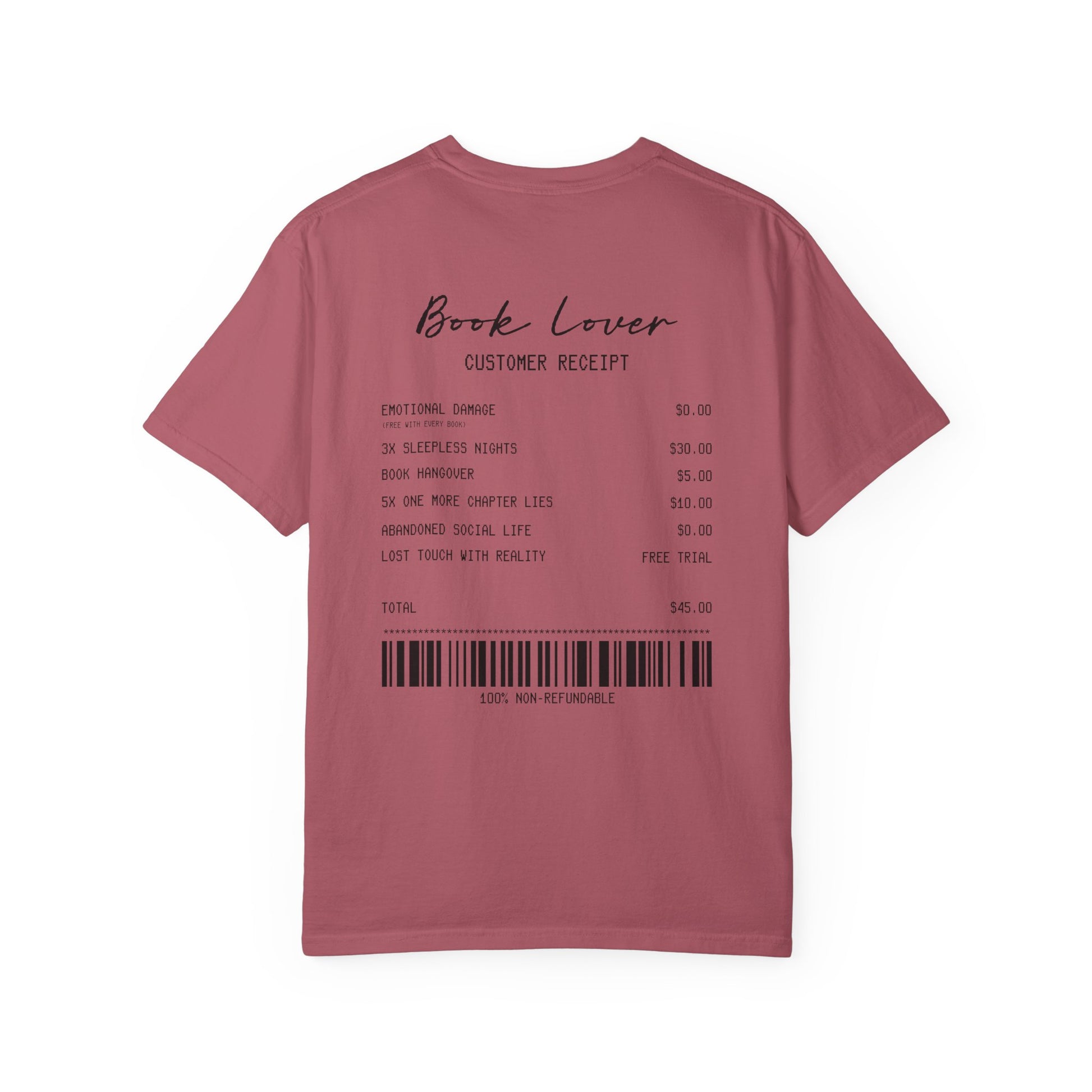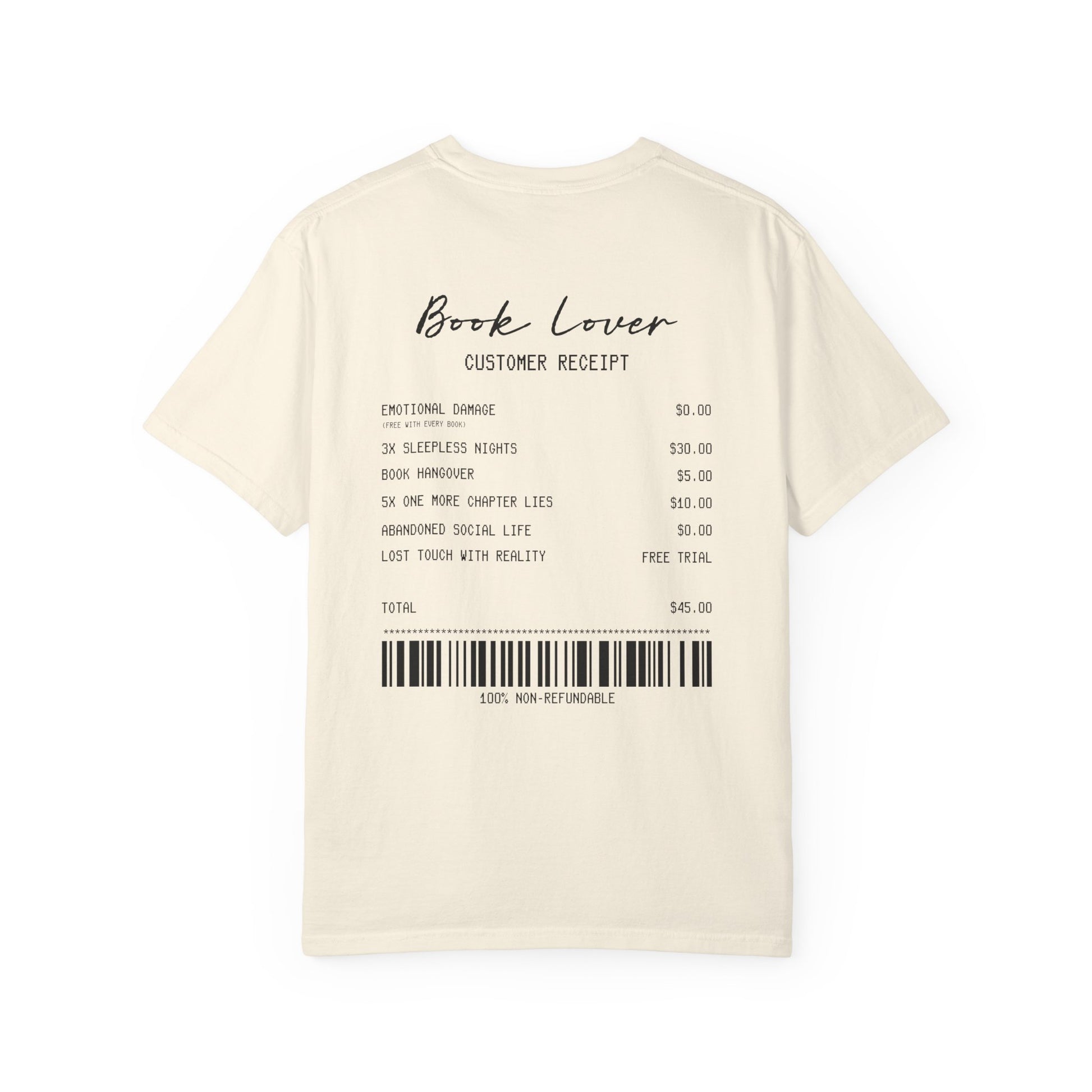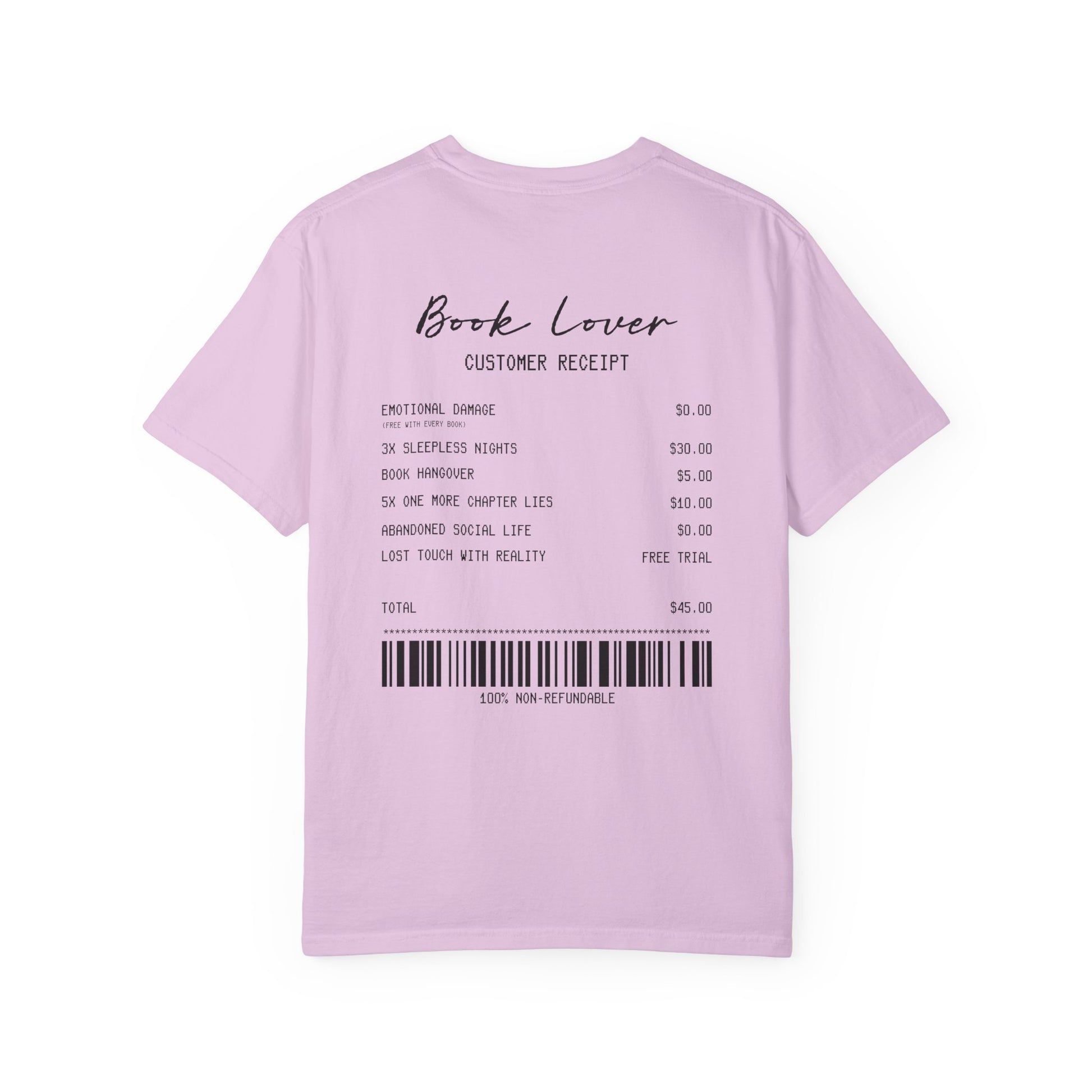 Book Lover T-Shirt — Receipt Print "Book Lover" Back Design